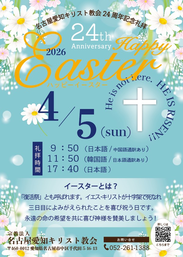 また、名古屋愛知キリスト教会が24周年を迎えることも感謝いたします。